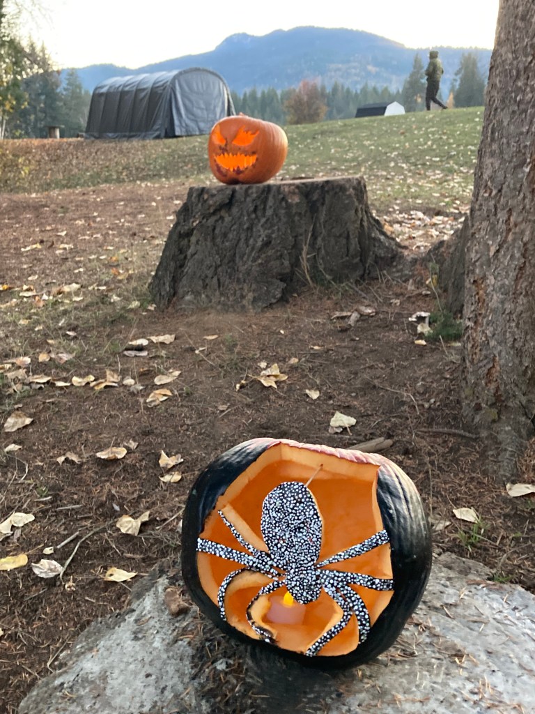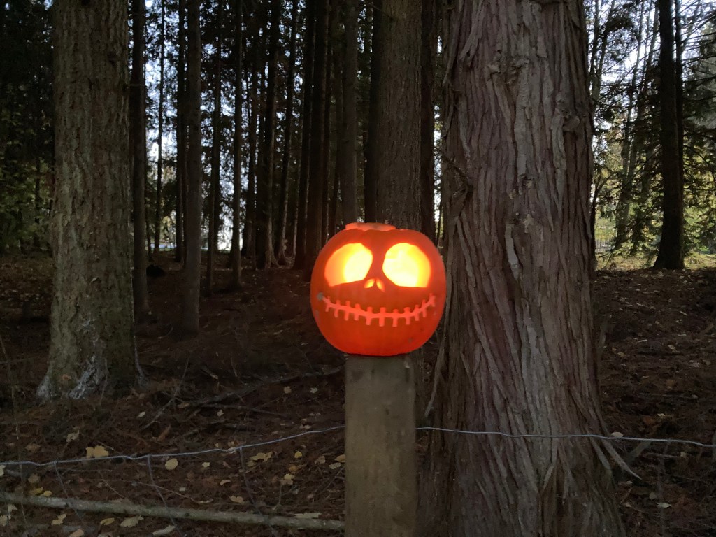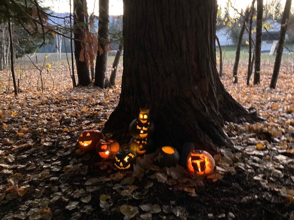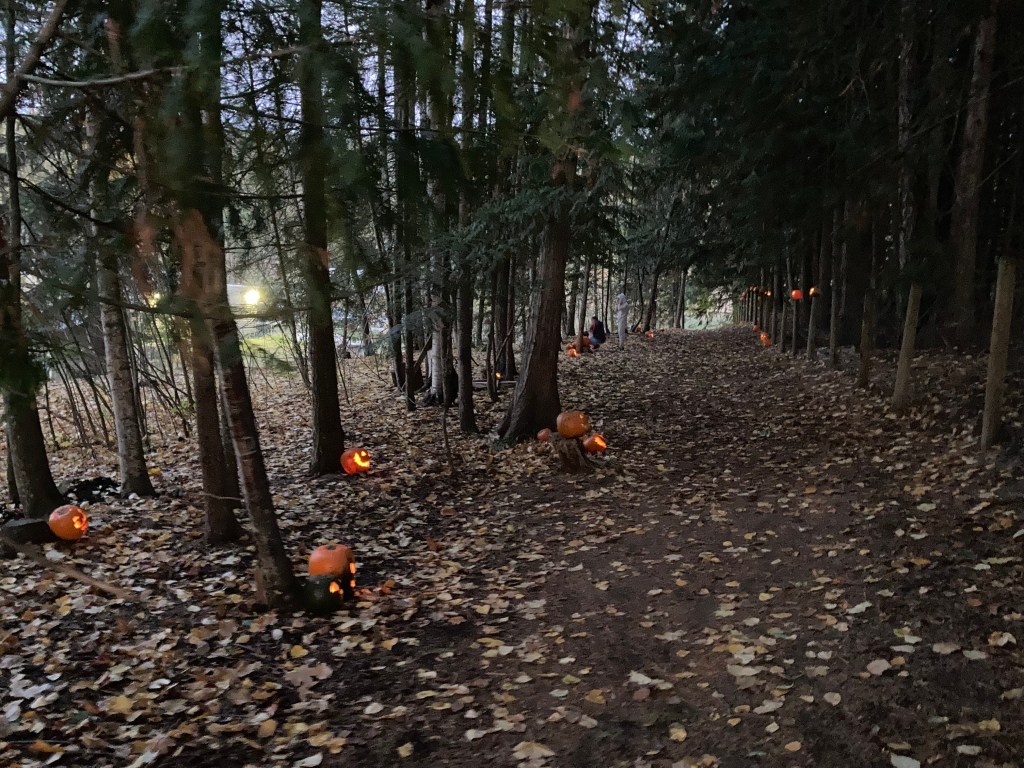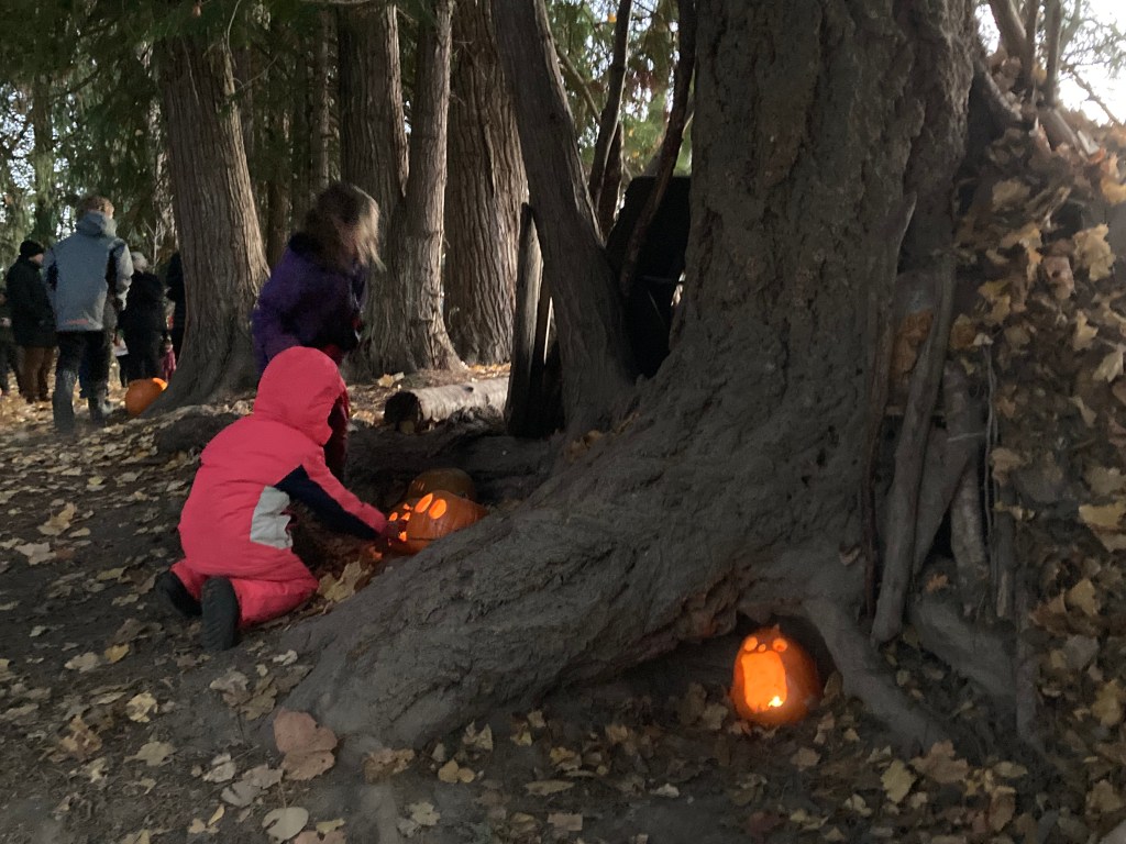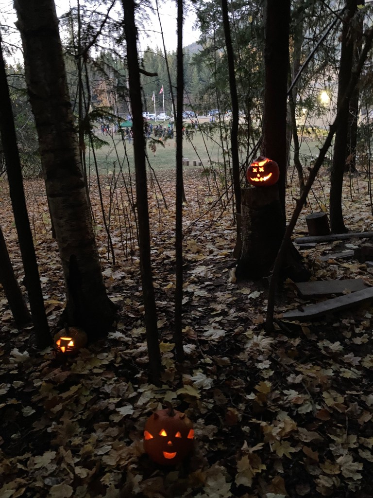 On Friday night, the pumpkins of South Canoe lit up the night for our 3rd annual Pumpkin Walk. Families converged on the school from 5:30pm to 6:30pm and got a chance to walk the trail amongst spooky, silly and creative pumpkins carved by each of our 7 divisions. Our amazing leadership students were a huge help with hot chocolate making, pumpkin lighting and keeping our visitors entertained. The pumpkins were gathered last week by Ms. Chandra’s class and Mme Styles’ class. Many of the pumpkins were grown from seeds the students had planted themselves last year at Enderberry Farm in Enderby. A huge thanks to Mme Styles for all her organization and planning – it was a wonderful evening!