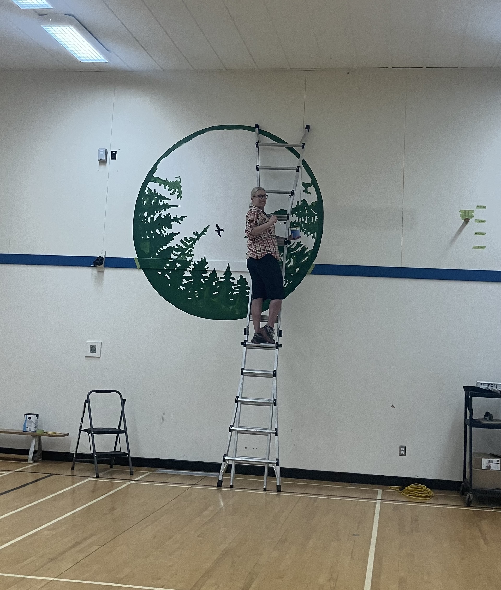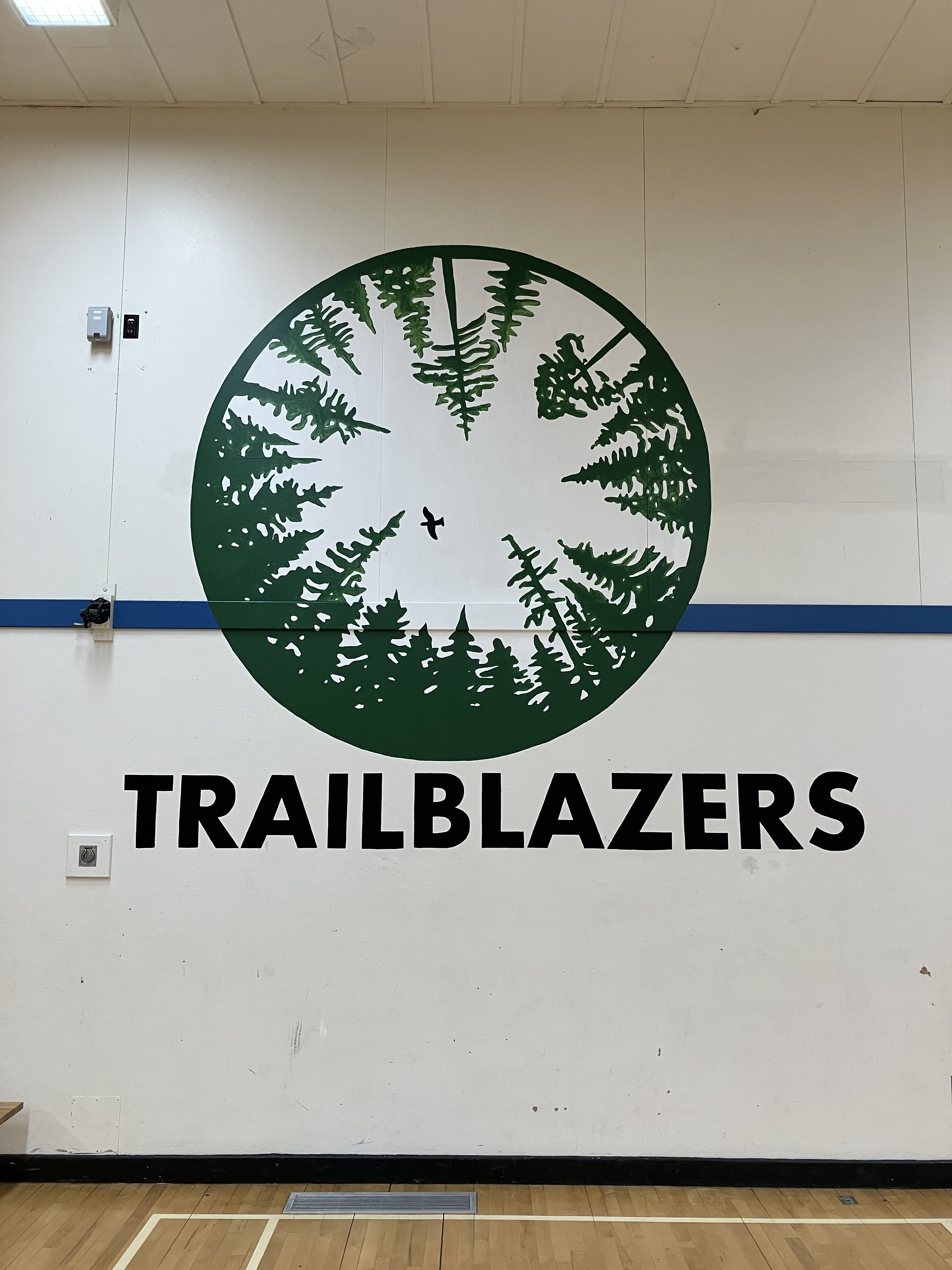 While it took a few hours and many trips up and down the ladder, Ms. Major discovered it was all worth it when the students and staff returned after spring break to discover their new Trailblazers logo on the gym wall. Seeing and hearing the kids’ excited reaction to their new gym mural was wonderful! Lets go Trailblazers!