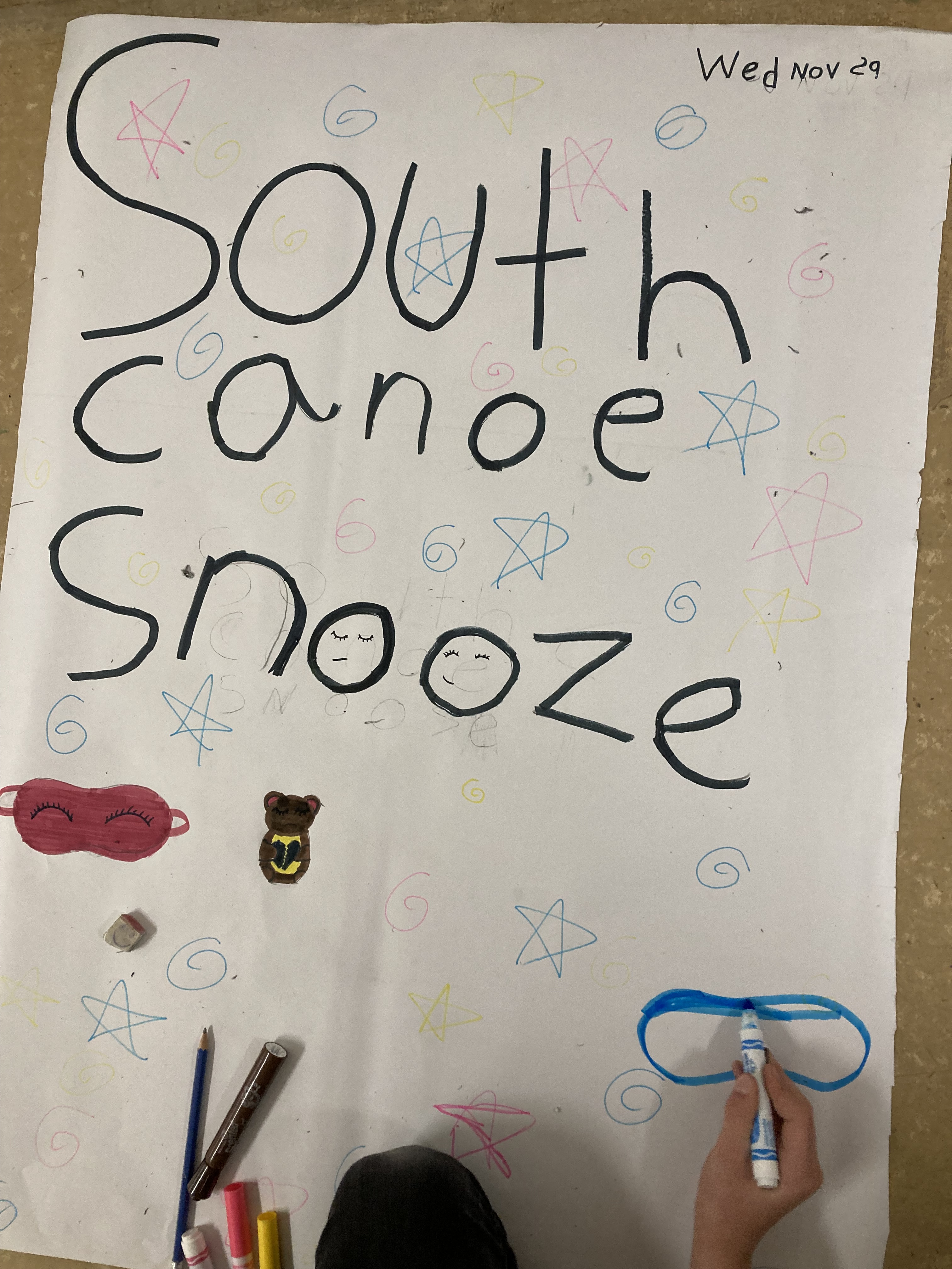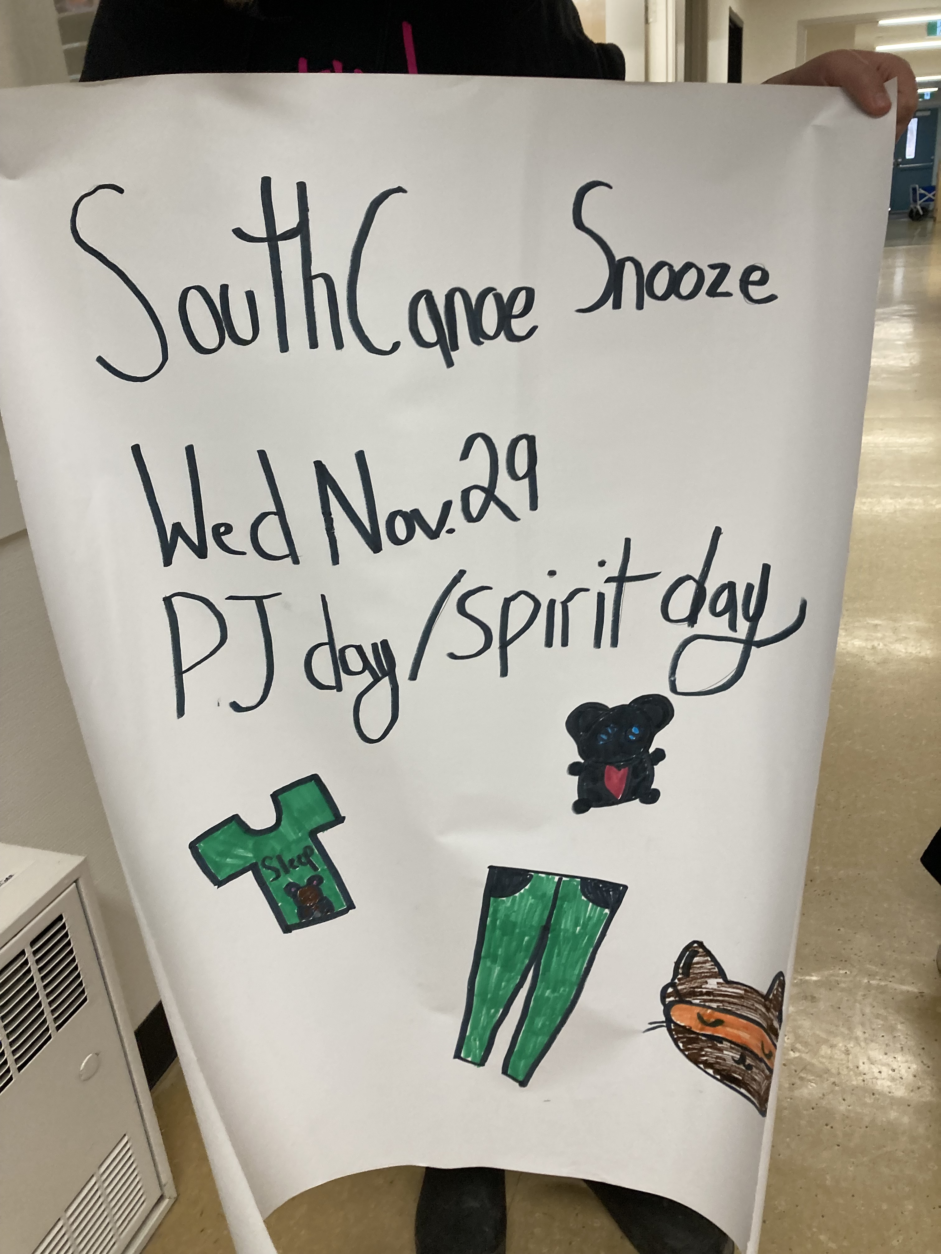 Wednesday, November 29th will be the “South Canoe Snooze” PJ Day! Come dressed ready for a regular outdoor day…but be sure to have some jammies on too!