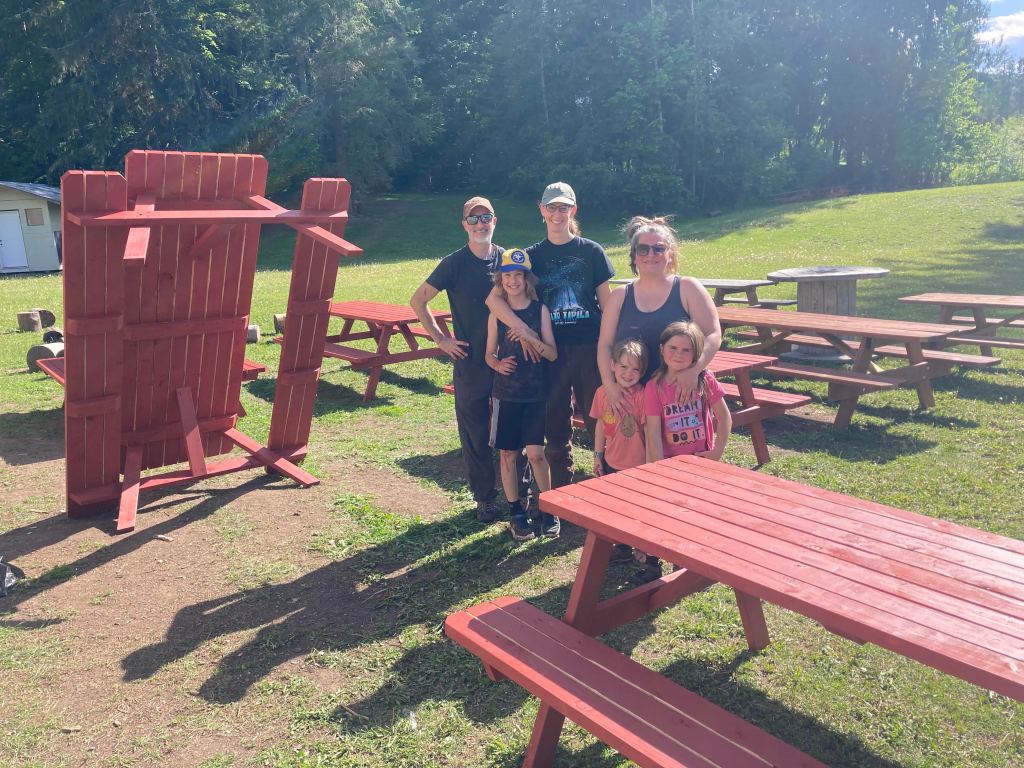 A huge thanks to the Scott, Leanne, Skye, Shay, Rory, and Addy for putting in a few hours of work to get our new picnic tables stained and ready for students to learn outside and for our school community to enjoy in all our future school events! The tables are awesome and they will be well used!