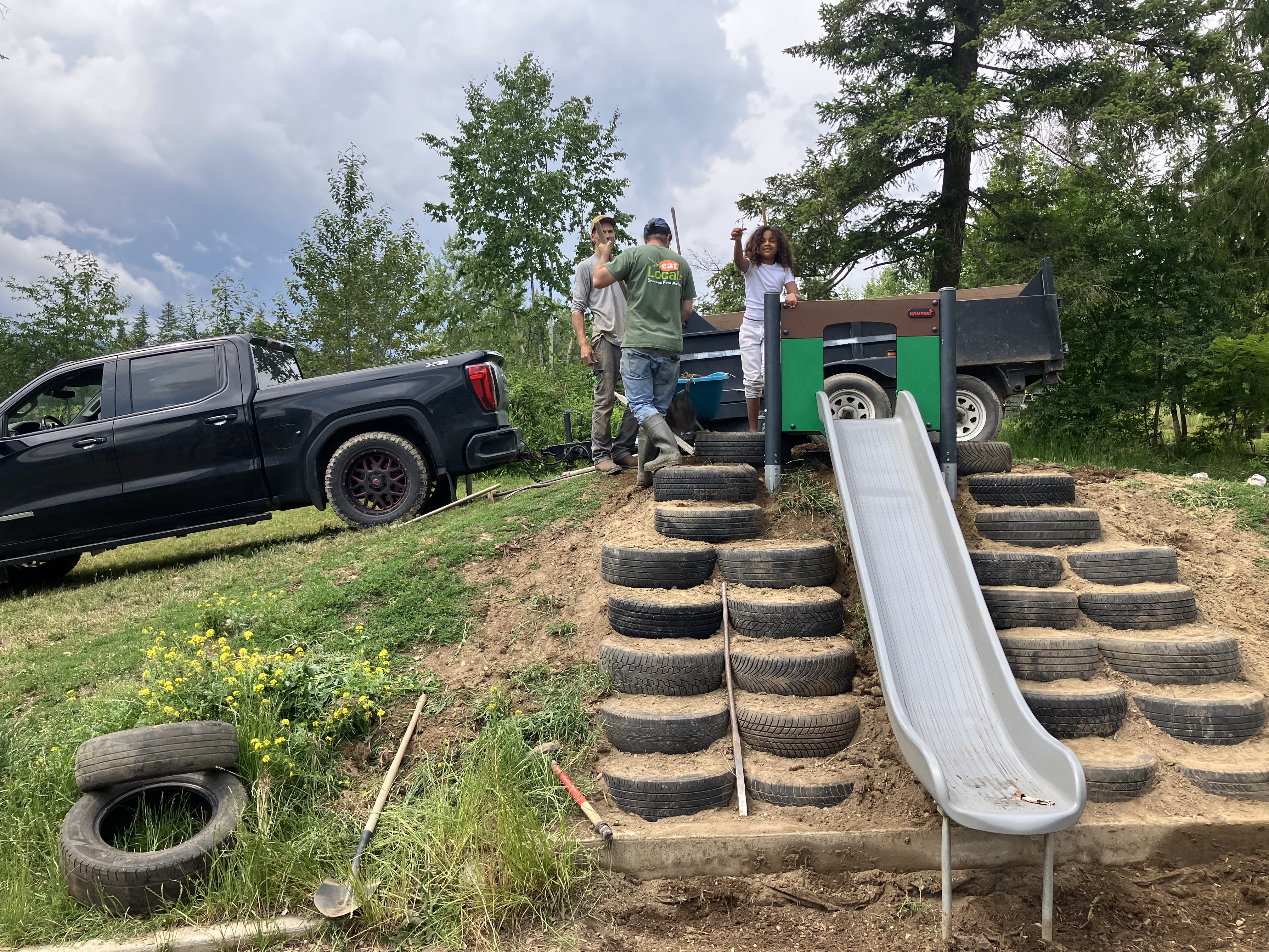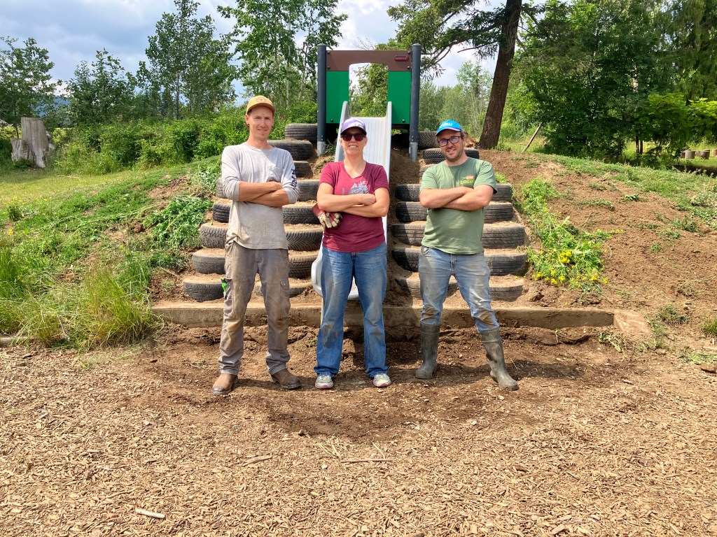 A huge thanks to parents Ben Miller and Mitch Ward for coming to South Canoe on their Sunday morning to put some sweat equity into their kids’ school! It took a few hours but we were able to make some awesome new stairs for the slide to prevent erosion and make our playground even better!