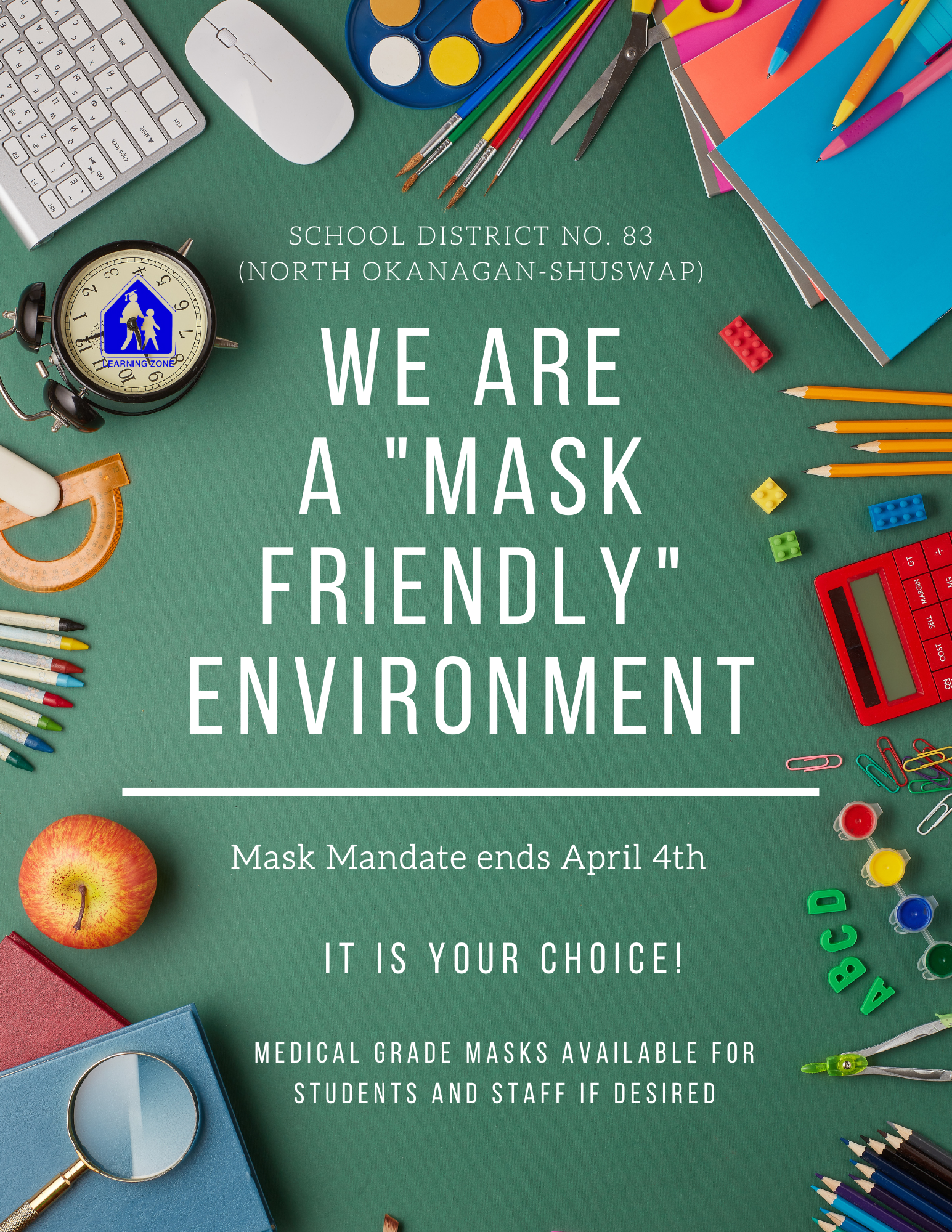 Just a reminder that when we all come back to school that the mask mandate has ended. SD83 is a “mask friendly” school district. You can wear a mask if you choose.
